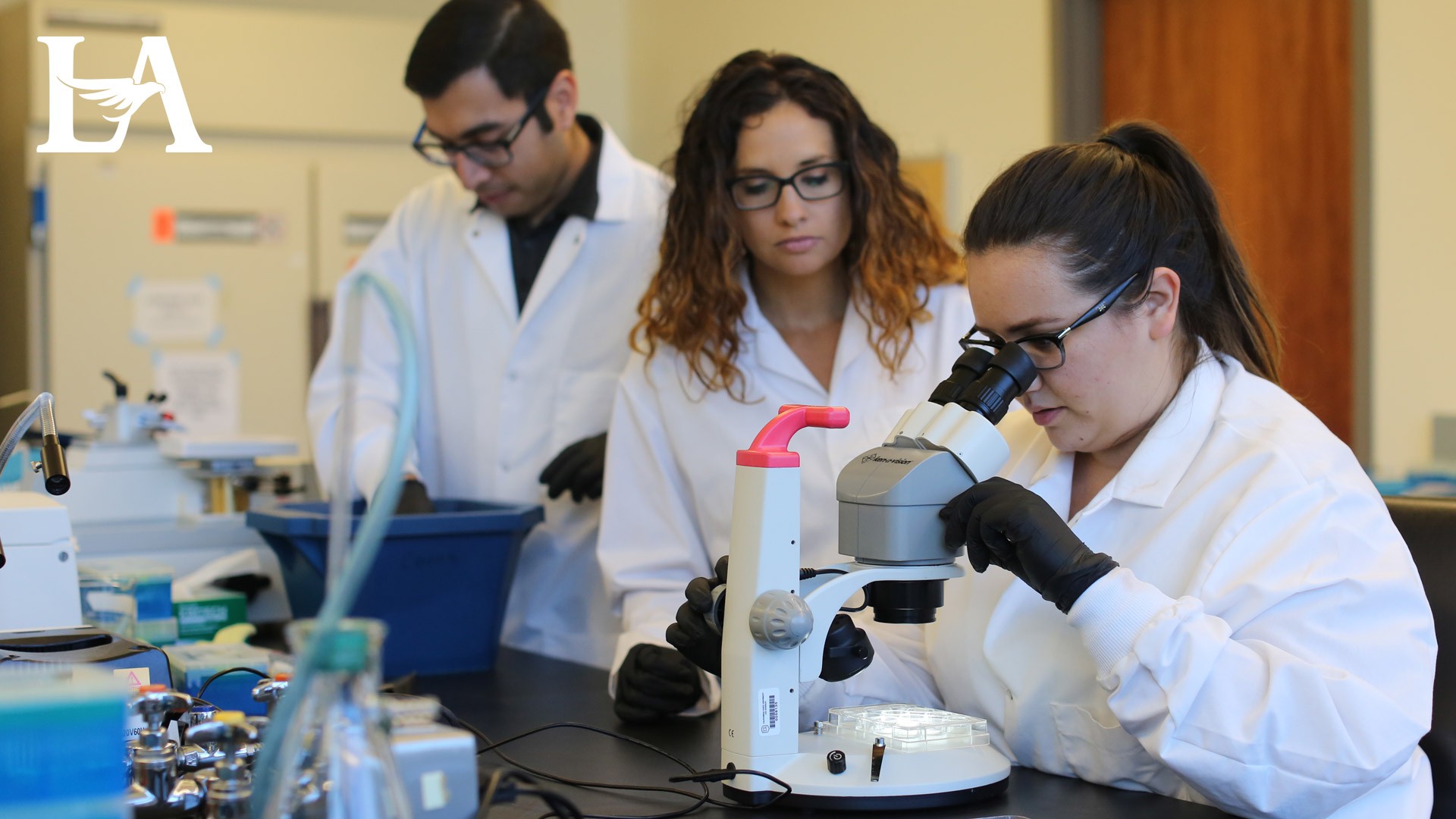 Two students using a pipet during an laboratory exercise.