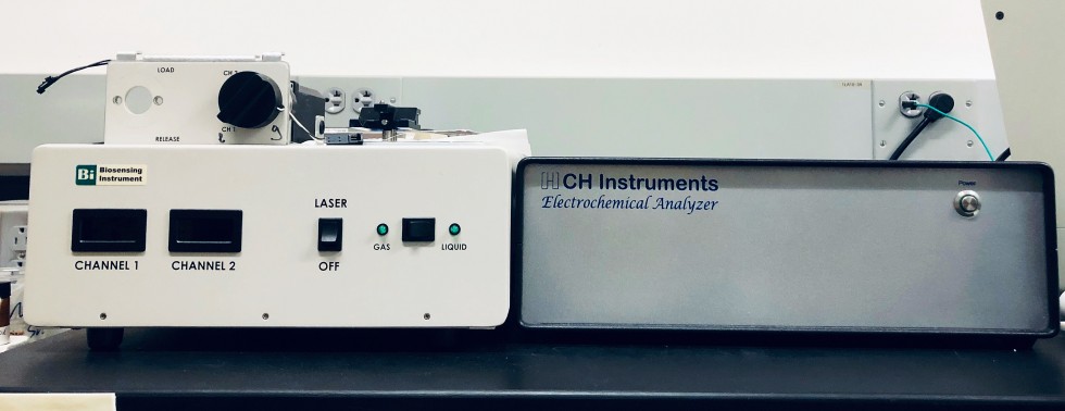 3. Electrochemical-Surface Plasmon Resonance (EC-SPR) system.